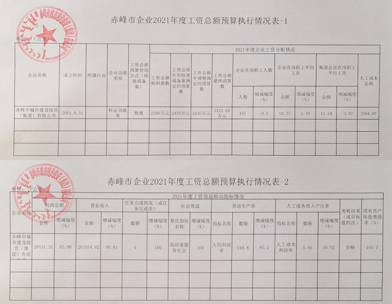赤峰市企業(yè)2021年度工資總額預(yù)算執(zhí)行情況表