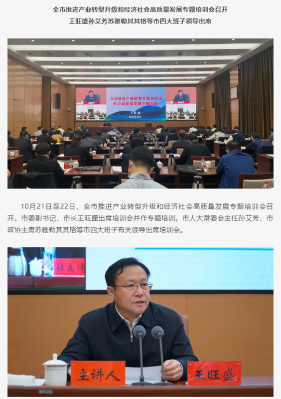 全市推進(jìn)產(chǎn)業(yè)轉(zhuǎn)型升級和經(jīng)濟(jì)社會高質(zhì)量發(fā)展專題培訓(xùn)會召開