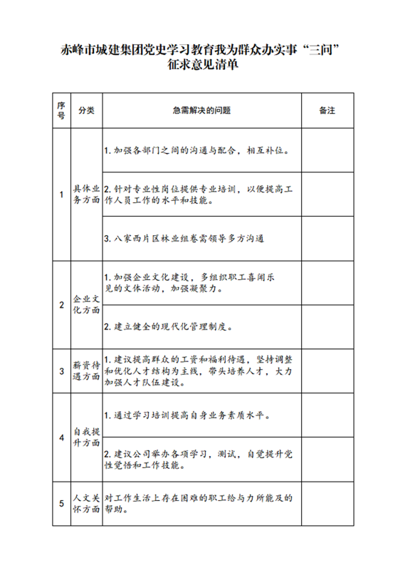 赤峰市城建集團(tuán)黨史學(xué)習(xí)教育我為群眾辦實(shí)事“三問” 征求意見清單